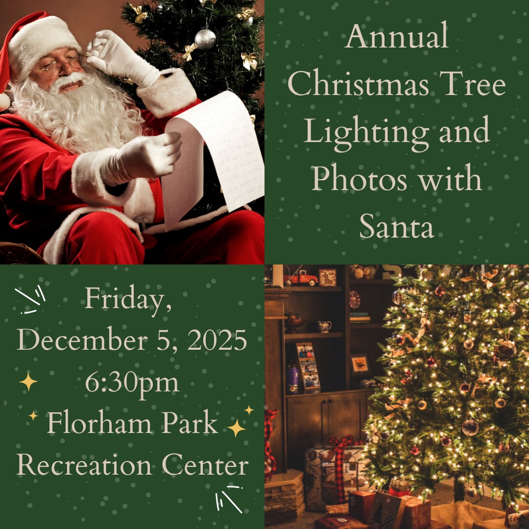 Our annual Christmas Tree Lighting and Photos with Santa event will be held on Friday, December 5, 2025, at the Florham Park Recreation Center.