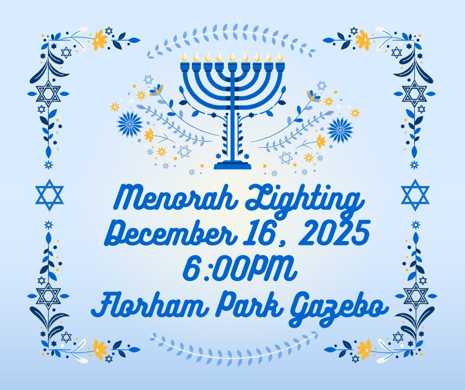 The Florham Park Annual Menorah Lighting will take place on Tuesday, December 16, 2025, at 6PM on the Gazebo Lawn. The ceremony will be celebrated by Cantor Jonathan Comisar, spiritual leader of Congregation Beth Torah in Florham Park, who will lead the community in lighting the Hanukkah candle with the assistance of the children from Congregation Beth Torah's Religious School. Rabbi Shalom Lubin, of Chabad of SE Morris County, will also participate in the ceremony.