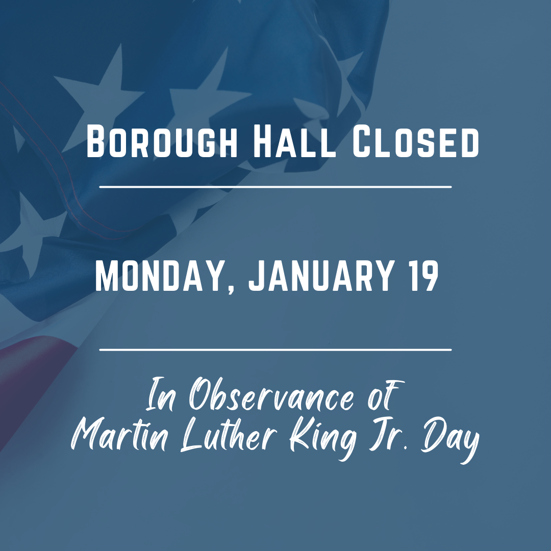 Borough Hall is closed on Monday, January 19 and will reopen on Tuesday at 9:00am. Thank you