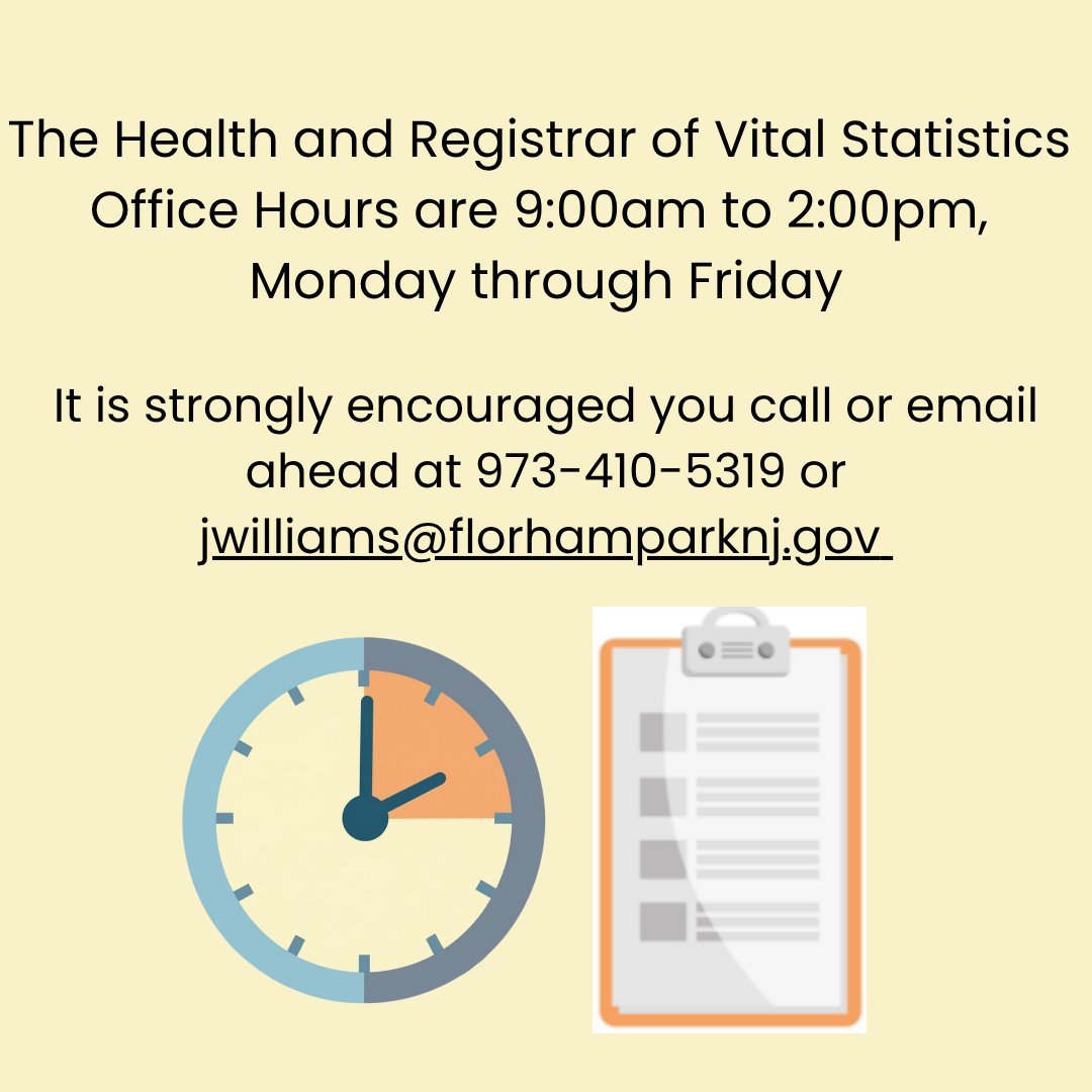 Please visit the following page for more information: Borough of Florham Park New Jersey - Public Health