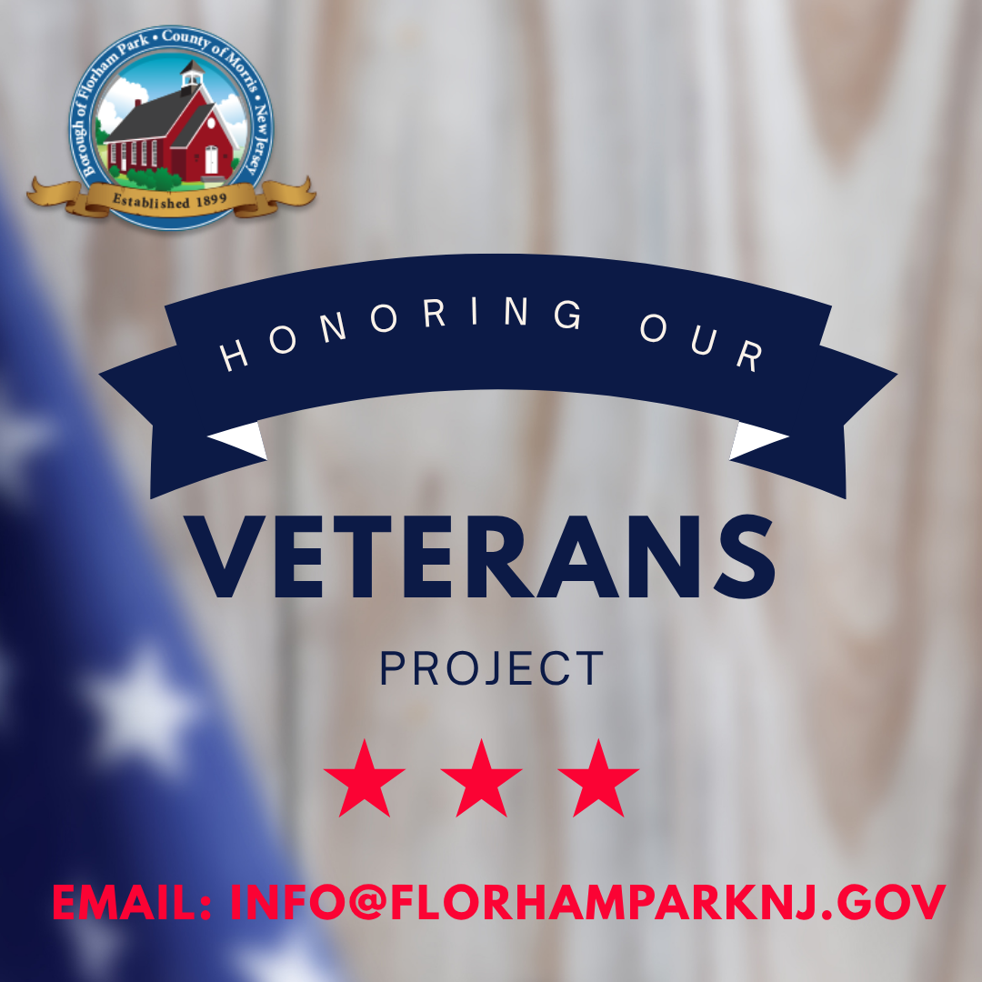 Florham Park is collecting data for our Veterans’ Memorial! Please send name, years of service, branch, rank, and any other pertinent information to info@florhamparknj.gov